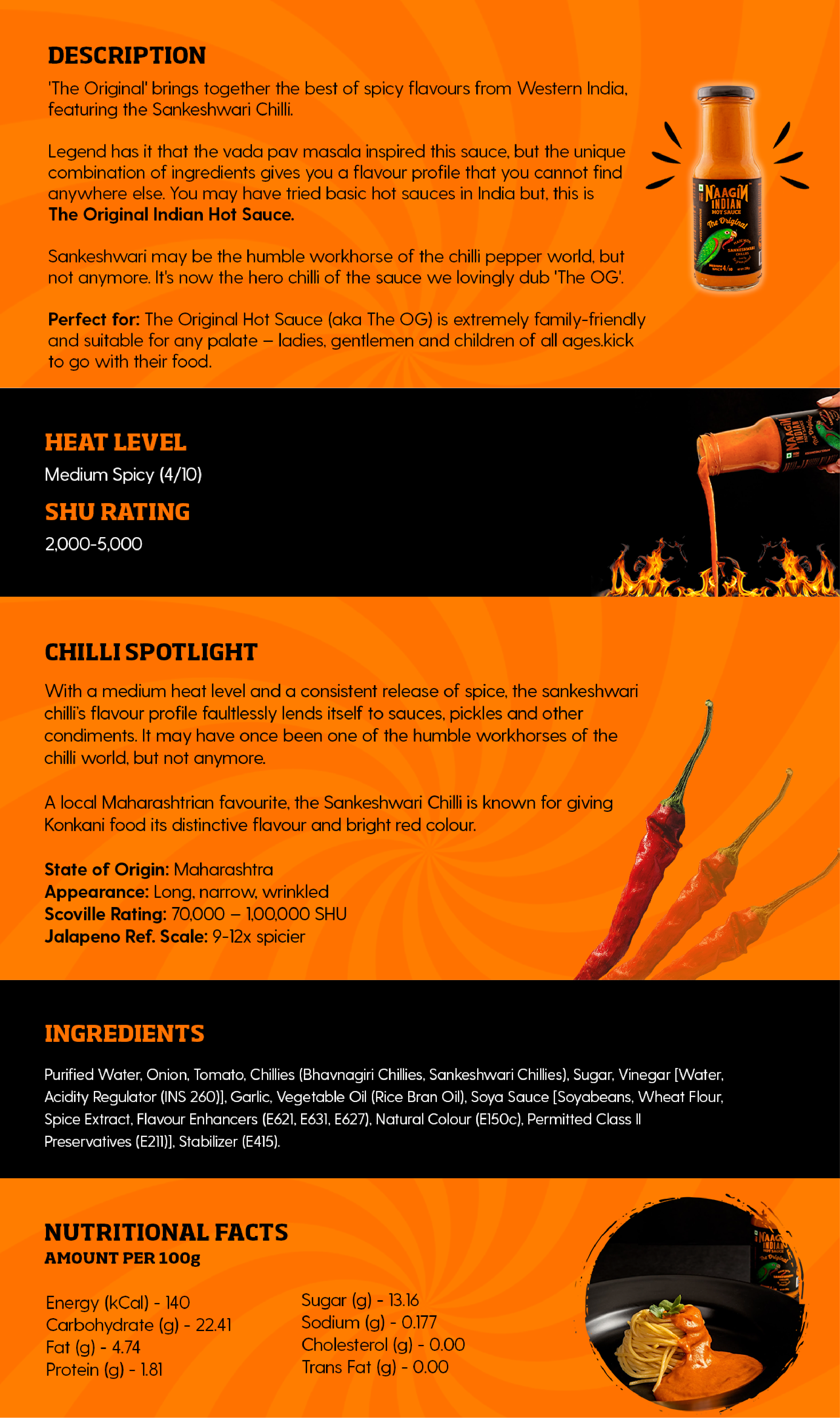 A full-bodied uplifter of the bland, The Original Indian Hot Sauce was painstakingly crafted specifically for the Indian palate. We blended real vegetables, a special blend of Sankeshwari & Bhavnagri chillies, and our secret ingredients to create a distinct and elegant flavour that offers a bit of sweetness and a bit of heat in every bite.